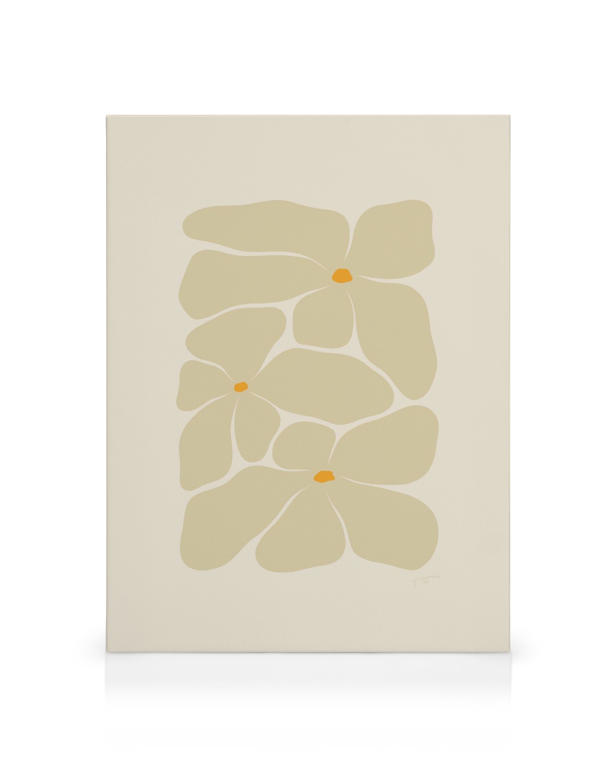 Från 249 krLägg till en abstrakt touch i ditt hem med denna canvastavla. Den har ett beige kronbladsmönster på en krämfärgad bakgrund, med små orange ovaler i mitten av varje kronblad. Perfekt för att skapa en stilfull tavelvägg.