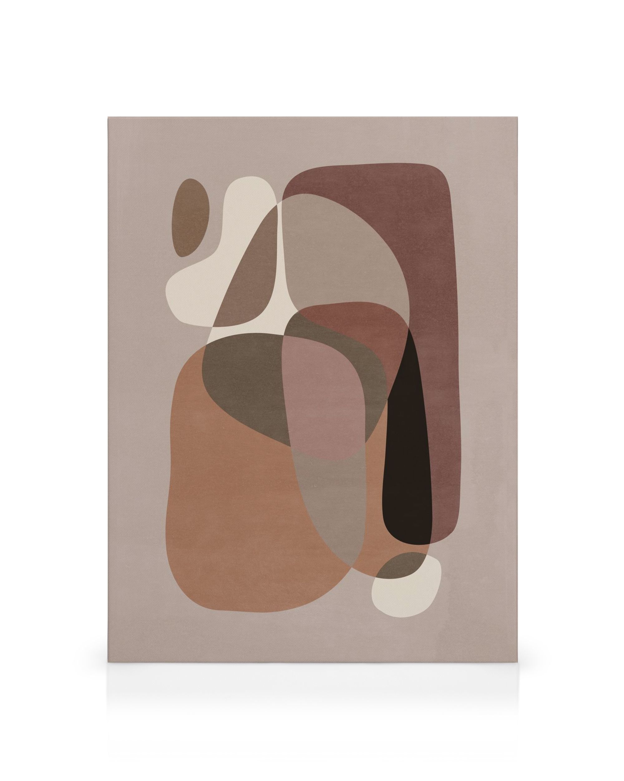 Organiska abstrakta former i jordnära toner av brunt och beige överlappar i en flytande komposition på denna canvastavla. Perfekt väggkonst för att ge värme och djup till ditt hem.