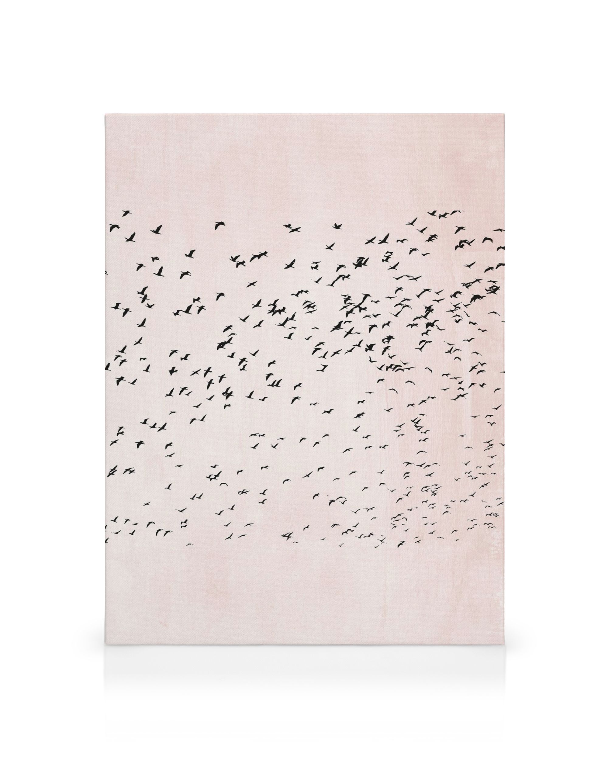Från 249 krEn minimalistisk canvastavla med en ljusrosa bakgrund och små svarta fågelsilhuetter spridda över toppen, minskande i antal mot botten för att skapa ett enkelt men elegant tavelverk.