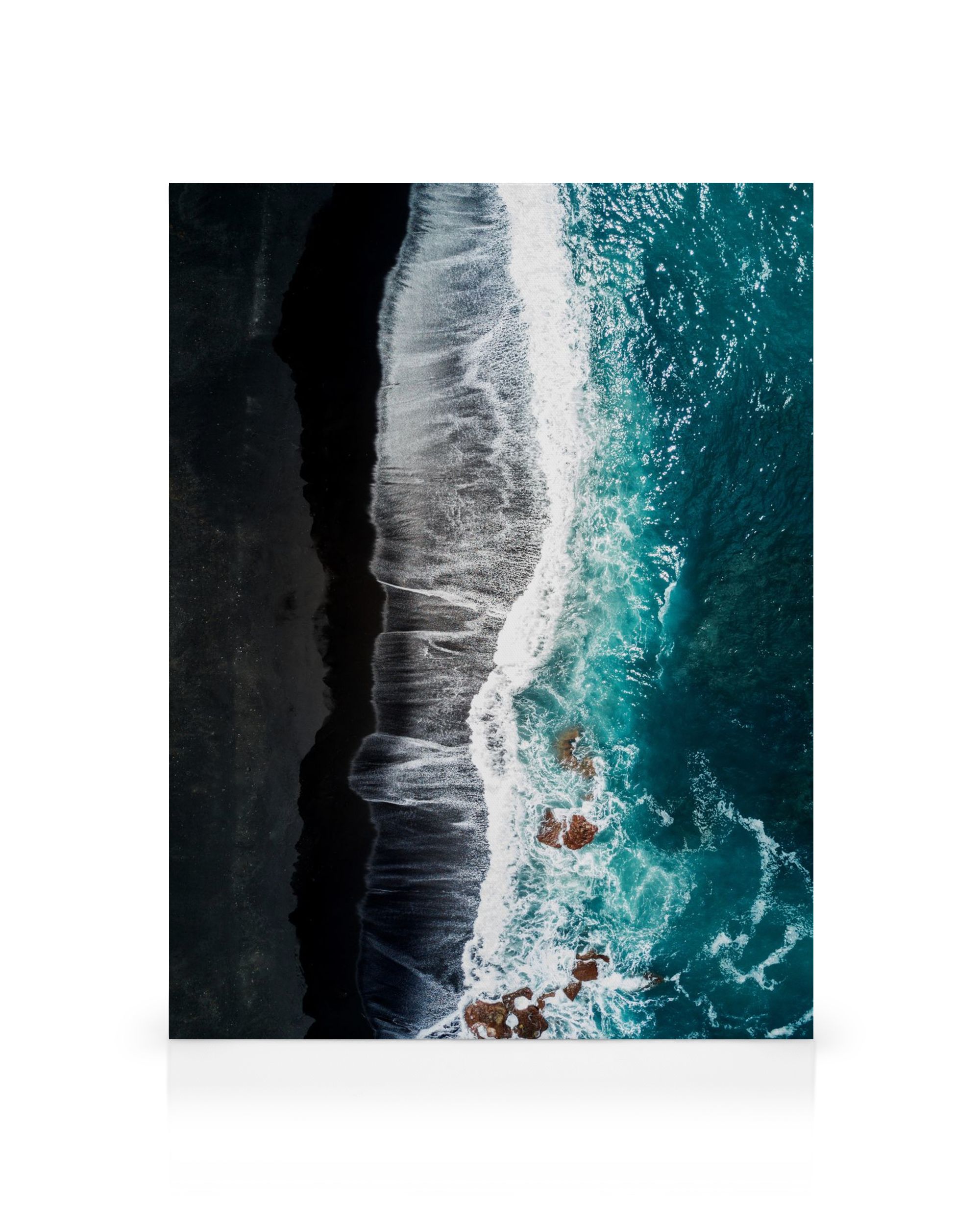 Från 249 krEn vacker canvastavla som visar en vibrerande blå kustlinje från ovan, med kontrasterande mörk strand och klippor. Perfekt för att lägga till ett fantastiskt landskap på din vägg.