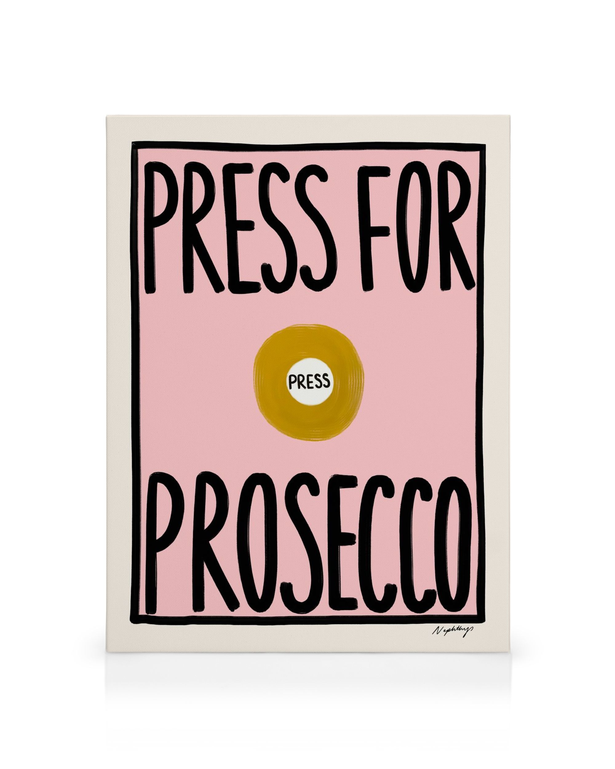 Från 249 krEn lekfull canvastavla med en rosa bakgrund. En gul knapp med texten "Press For Prosecco" i svart text. Denna canvastavla tillför en färgklick och humor till ditt hem.