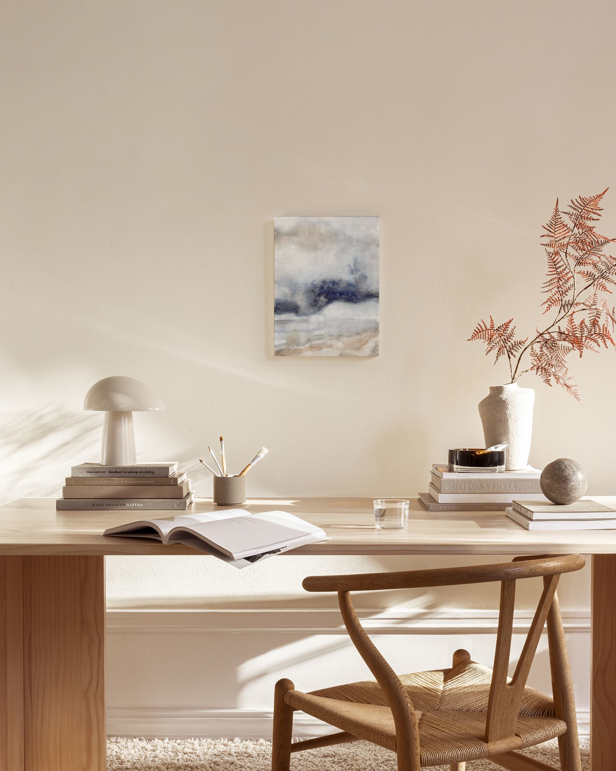 Från 129 krEn vacker abstrakt canvastavla med suddiga nyanser av blått, brunt och vitt som mjukt blandas samman. Denna unika väggkonst har en textur som vattenfläckat papper och tillför en konstnärlig touch till din heminredning eller tavelvägg.