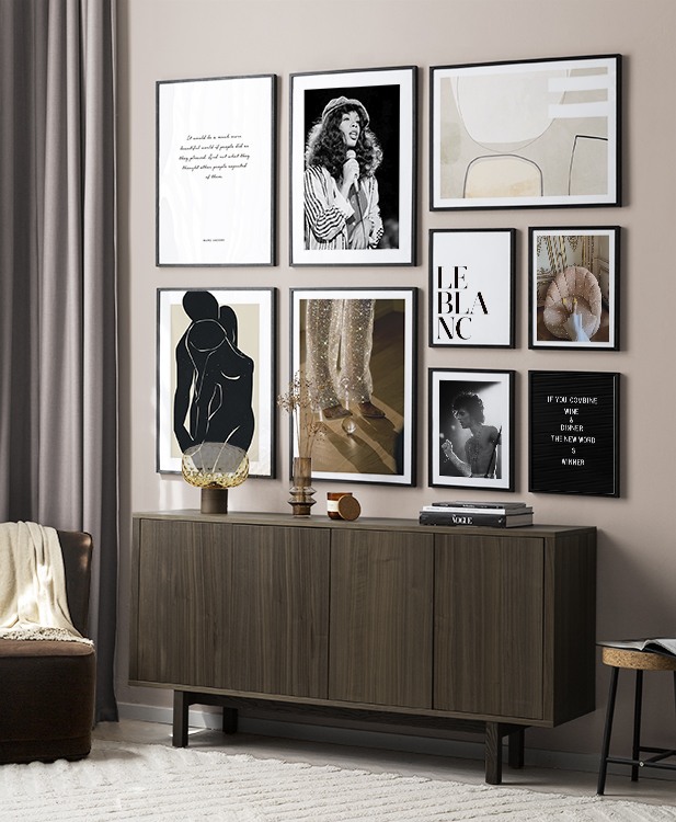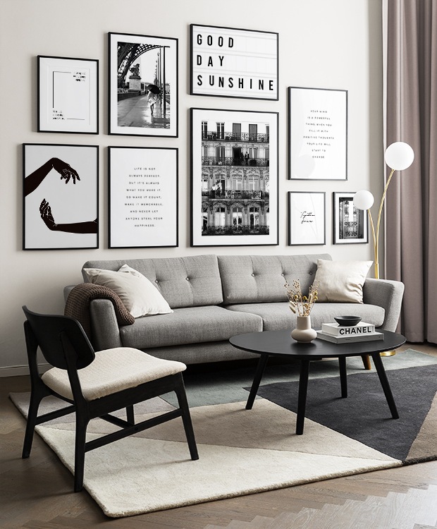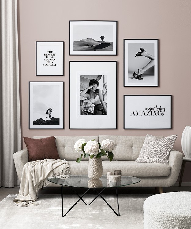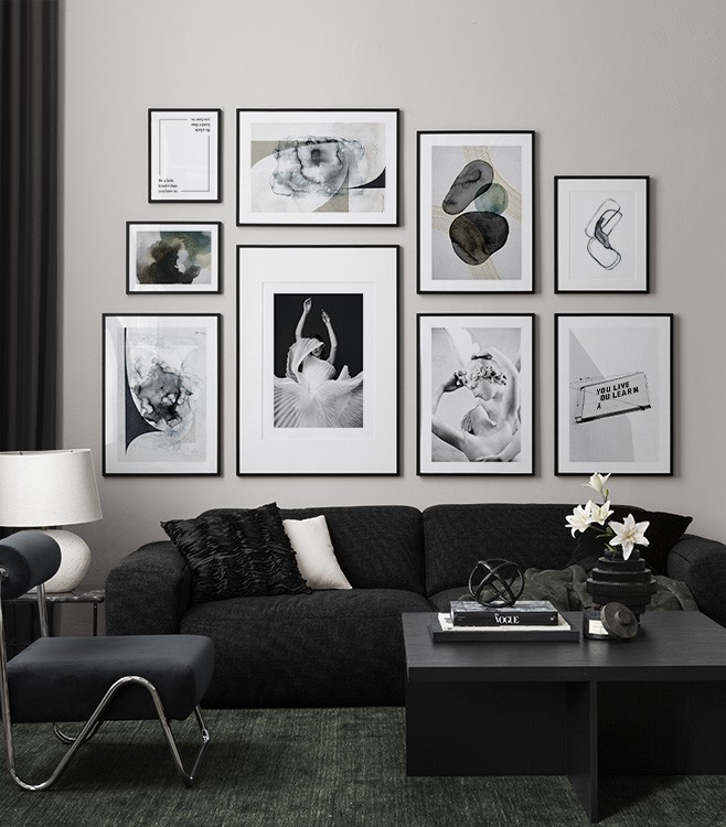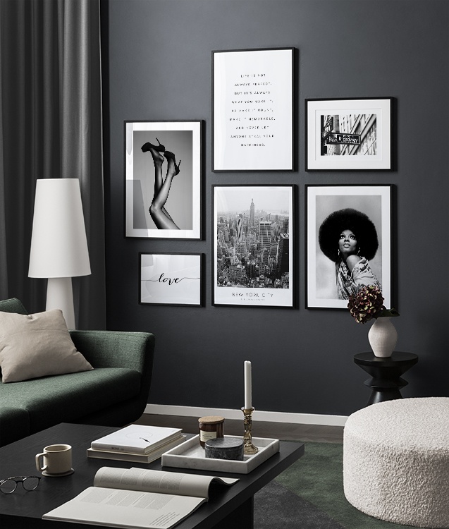 Bläddra bland inspirerande tavelväggar med både kontrastrika, svartvita posters och de som går i en mjukare gråskala. Trendigt monokromt eller svartvita klassiker - vi har svartvita tavelväggar för alla!