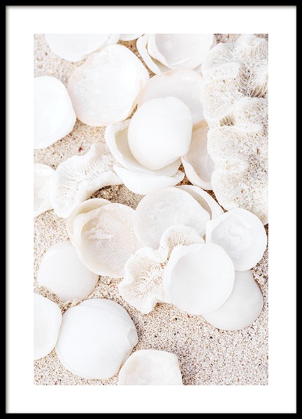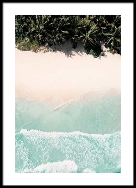Handpicked motiv Affisch med fotografi taget över en strand. En strand full av solstolar och parasoller i ljusa vita toner. Ett motiv i minimalistiska färger som fungerar utmärkt att kombinera till andra posters. Ett tips är att kombinera motivet till andra liknande posters som du kan hitta i vår kategori naturmotiv.